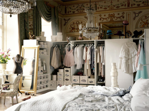 Particularly LOVE the above idea with the dresses at the window - using fashion as home decor!